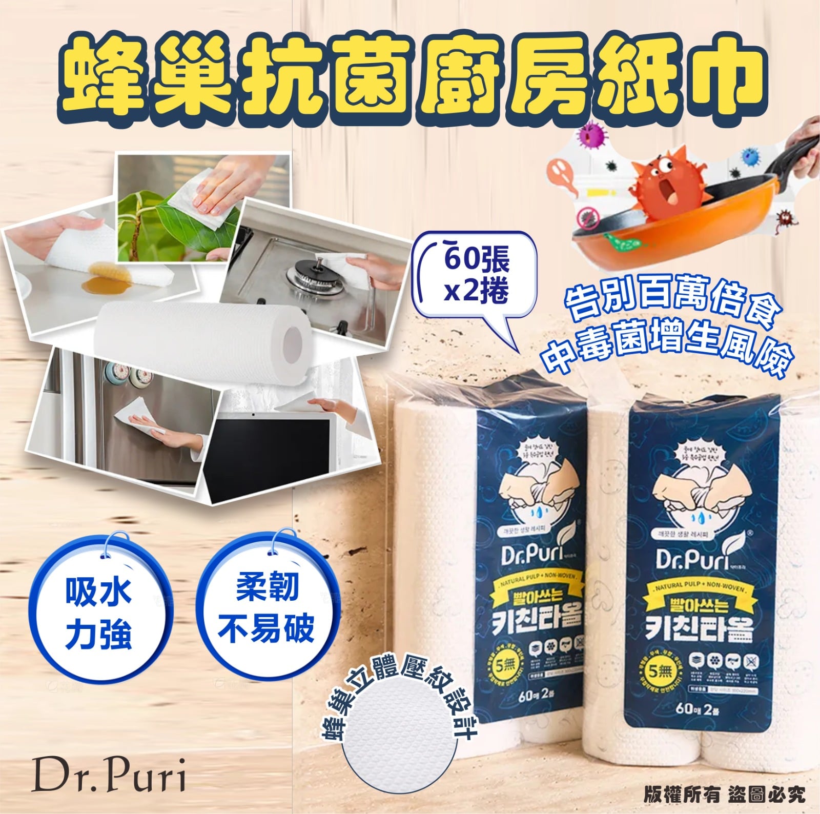 韓國 Dr.Puri 蜂巢抗菌廚房紙巾 (1組2卷共120張)