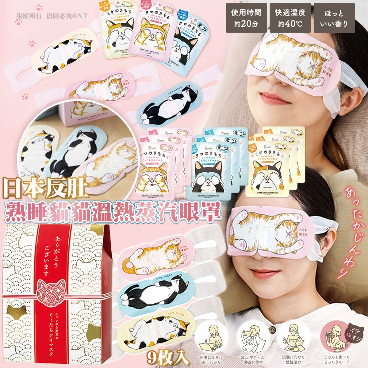 【日本反肚熟睡貓貓溫熱蒸汽眼罩(9入)】