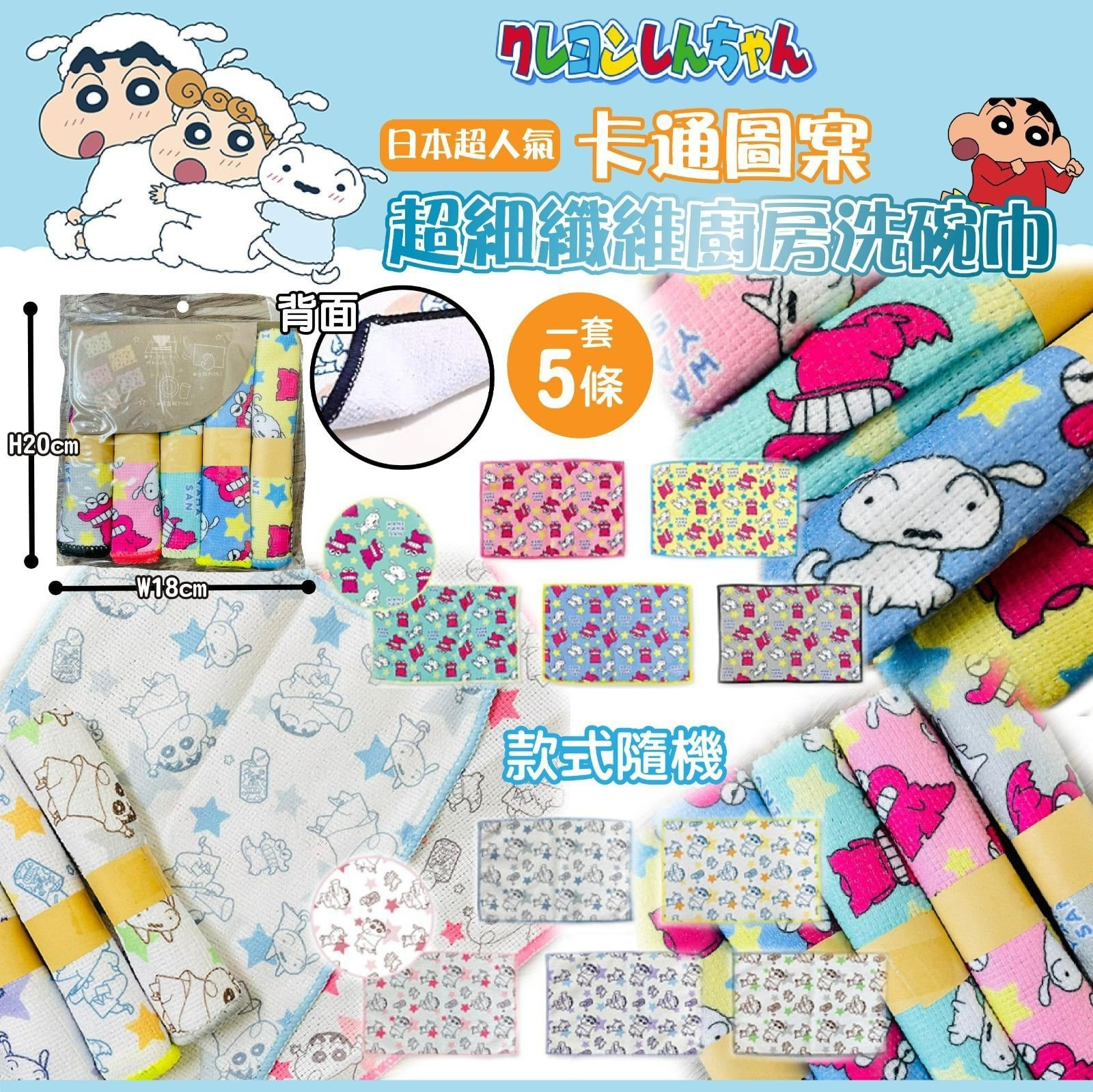日本蠟筆小新超細纖維廚房洗碗巾(一包5條,1套2包)