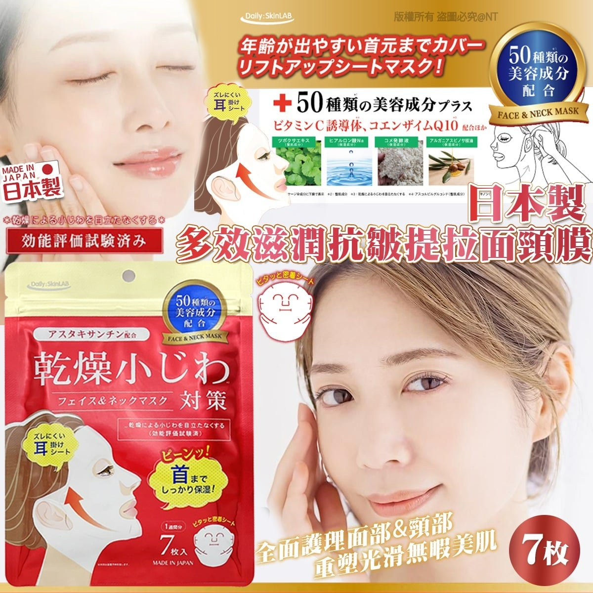 日本製|多效滋潤抗皺提拉面頸膜,一包7入