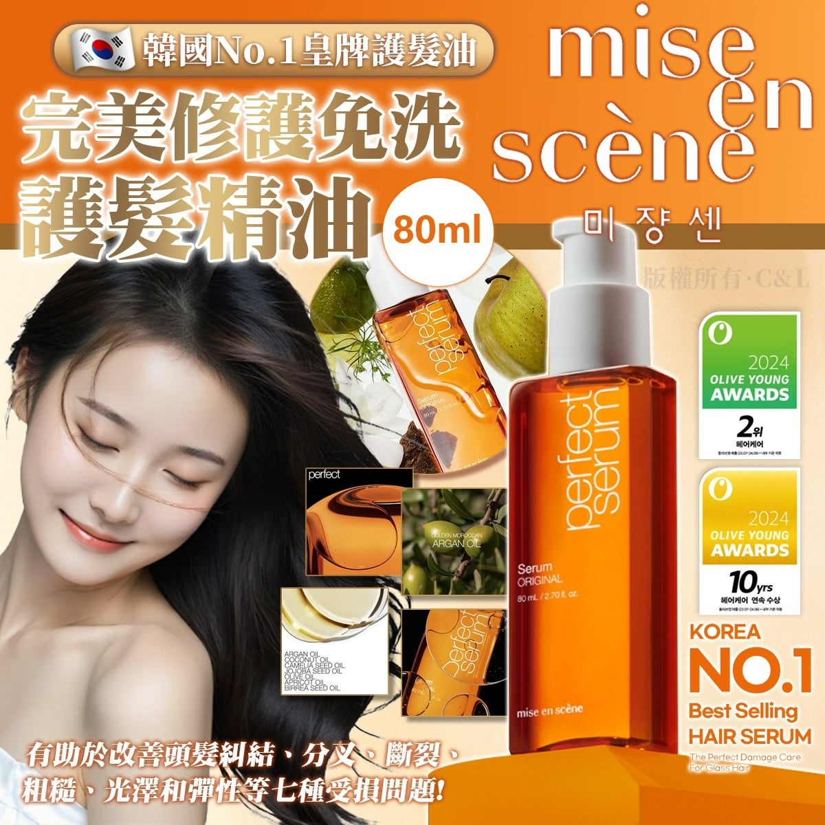 【韓國No.1皇牌護髮油 | Mise en scene 完美修護免洗護髮精油 80ml】