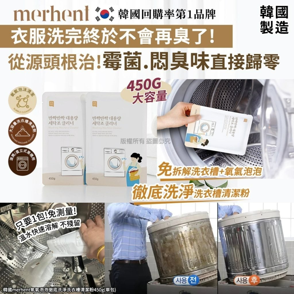 【韓國merhent氧氣泡泡徹底洗淨洗衣槽清潔粉450g(1套4包)】