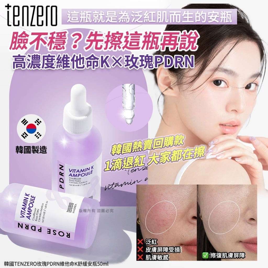 韓國 TENZERO 玫瑰 PDRN 維他命K舒緩安瓶 50ml