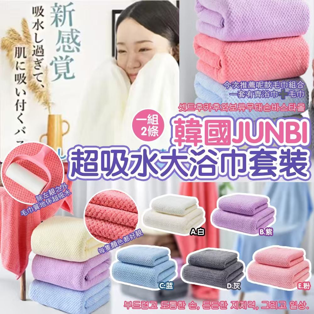 韓國 JUNBI 超吸水大浴巾2條套裝