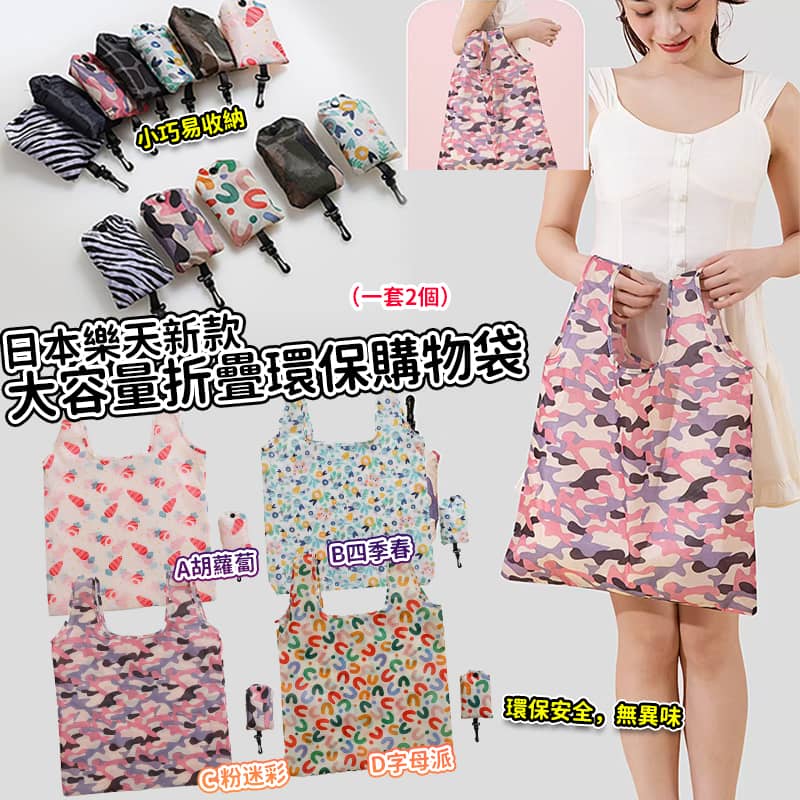 日本樂天新款大容量折疊環保購物袋 (1套2個)