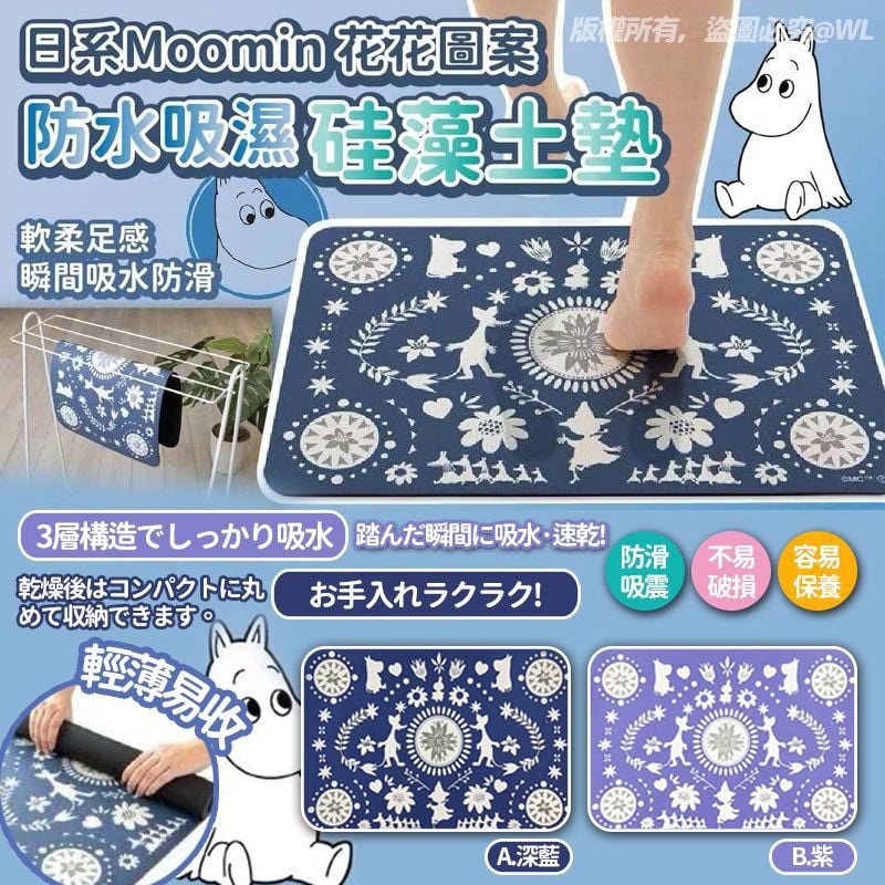 日系 Moomin 花花圖案防水吸濕硅藻土墊