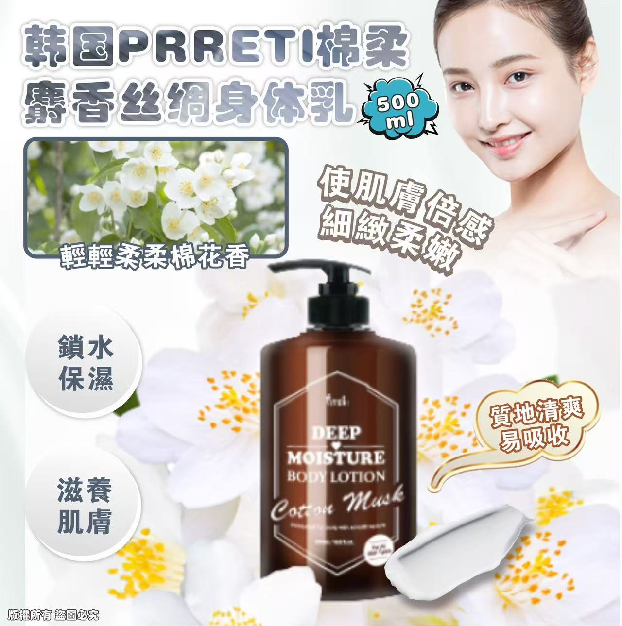 韓國Prreti 棉柔麝香絲綢身體乳500ml