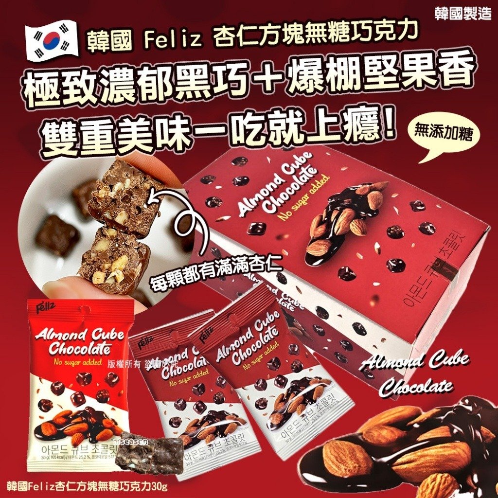 【韓國 Feliz 杏仁方塊無糖巧克力 30g】