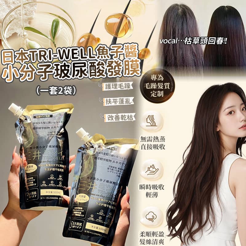 日本 TRI-WELL 魚子醬小分子玻尿酸髮膜 500ml (1套2包)