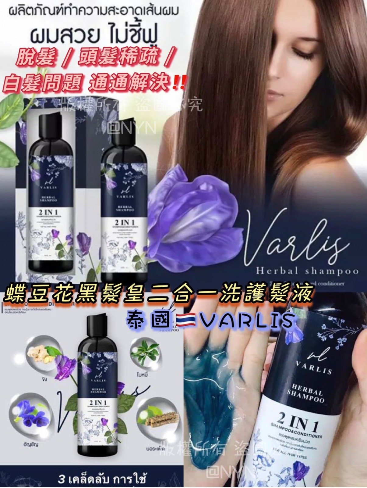 泰國 VARLIS 蝶豆花防脫黑髮皇二合一洗護髮液 400ml