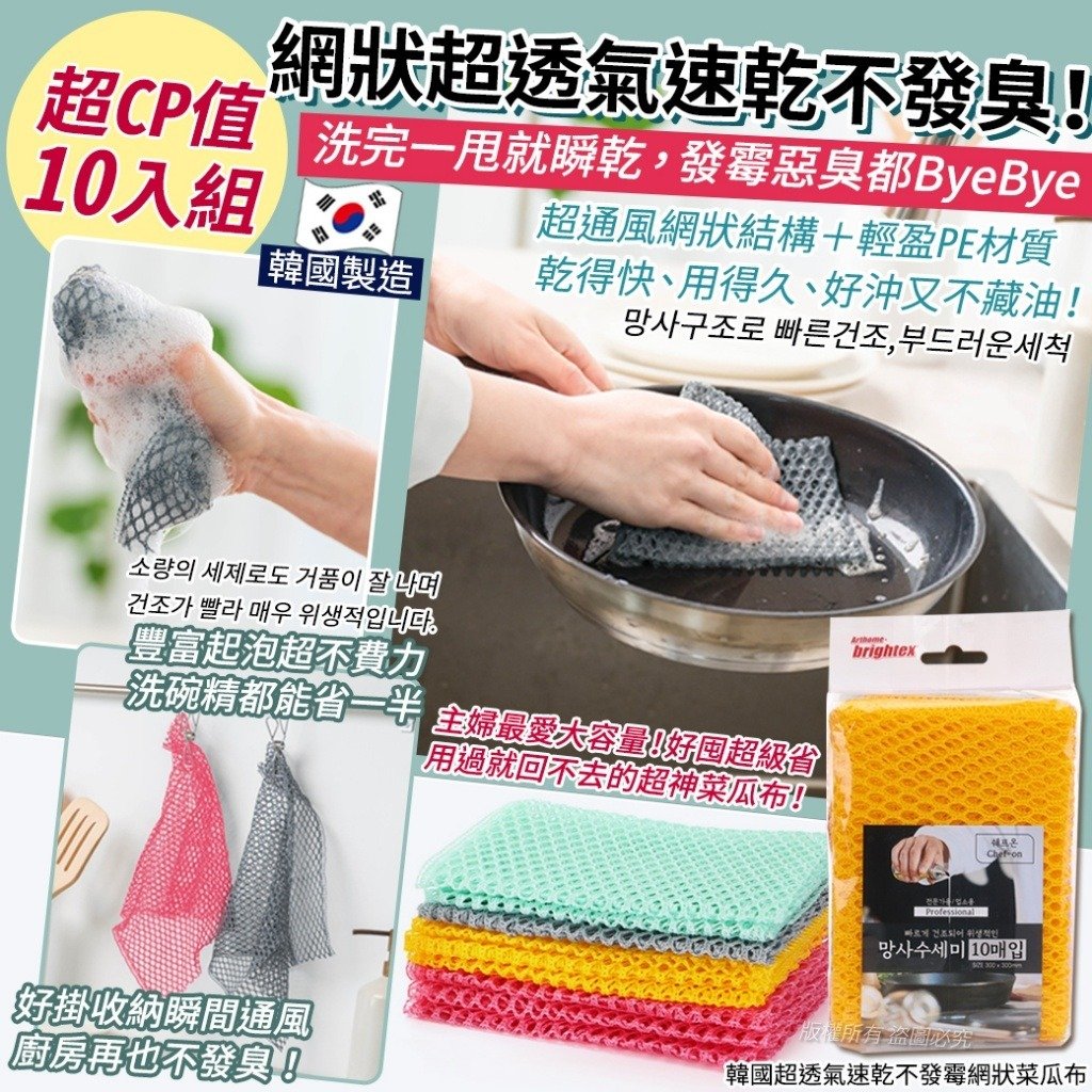 韓國超透氣速乾不發霉網狀菜瓜布 (1包10片)