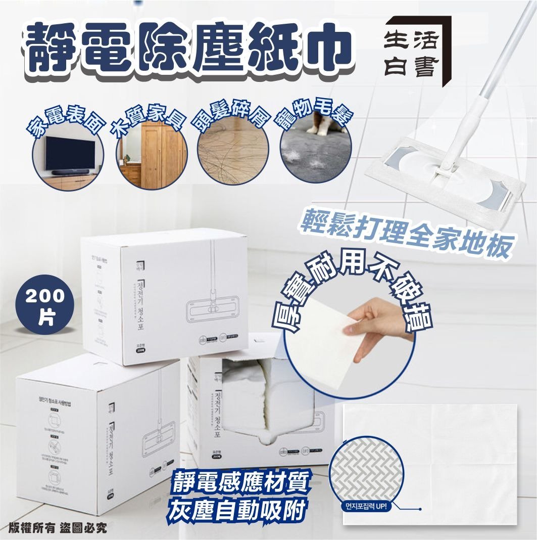 韓國生活白書靜電除塵紙巾 (1盒200片)