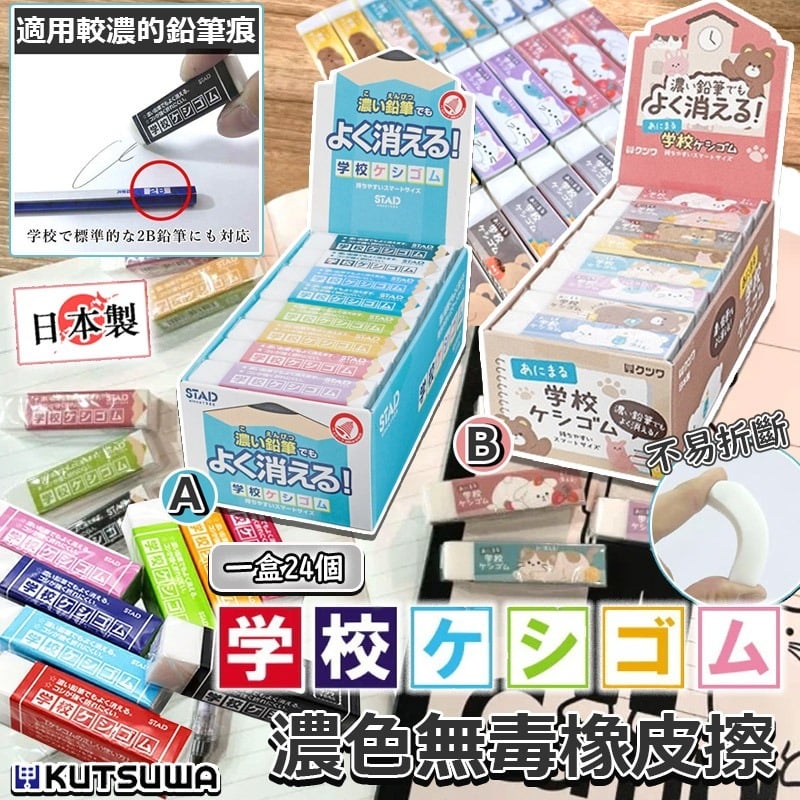 【日本製 STAD 濃色無毒橡皮擦 (1盒24個)】 呢款擦膠真心推介❤ 擦得勁乾淨👍🏼🆕 2024年新出🐱動物圖案🐶款式😍 將深色嘅筆跡擦得乾乾淨淨又唔易斷✏ 日本學生🏫返學必備專用擦子膠🎒 小朋友返學日日都要用擦膠,擦膠唔好用的話,唔單止影響小朋友做功課的時間及耐性,隨時擦字都擦到手軟,擦得唔乾淨仲會比老師覺得係污糟貓添~ 日本呢款STAD橡皮擦係日本學校專用,不少媽媽用過後都瘋狂回購,唔洗好用力就可以將深色鉛筆字擦走,而且用落唔會咁易折斷,非常耐用。 STAD擦膠橡皮較一般柔軟,就算用力擦都不易磨損紙張,擦膠係長柱狀,方便小手仔可以更易掌握! ✔安全:擦膠成份無毒 ✔輕鬆擦拭乾淨:濃色鉛筆字都可以被輕鬆擦乾淨 ✔條狀碎屑:擦膠屑會黏在一起,不會到處掉,保持桌面清潔 ✔不易折斷:耐用度佳,不易折斷 ✔易握取:長柱型狀,小朋友用起來時更易掌握 ✔橡皮柔軟:不易磨損紙張,令紙張越擦越薄 -規格:1盒24個 -尺寸:13mm×13mm×55mm -產地:日本 ⚠️包裝以出貨為準⚠️ ==⚠️聲明⚠️== 1.本貨品為平行進口正貨 2.所有帖文內容只作分享及參考用途,為免混淆視聽,所有商標或版權均屬有關商品品牌商標的持有人,敬請留意。 3.顏色或因拍攝器材或顯示螢幕等因素而與實物有異,以上圖片及文字僅供參考,一切以實物為準。 4.以上資料及外盒包裝只供參考,商品外盒原廠有更換新包裝權利,一切以實物為準。 ✨✨✨ 日本製 STAD 濃色無毒橡皮擦 (1盒24個) A.經典款 B.動物款 (如遇缺貨,將隨機出貨) $129/盒,2盒或以上:$119/盒 ✨✨✨ 數量有限,售完即止,不作另行通知