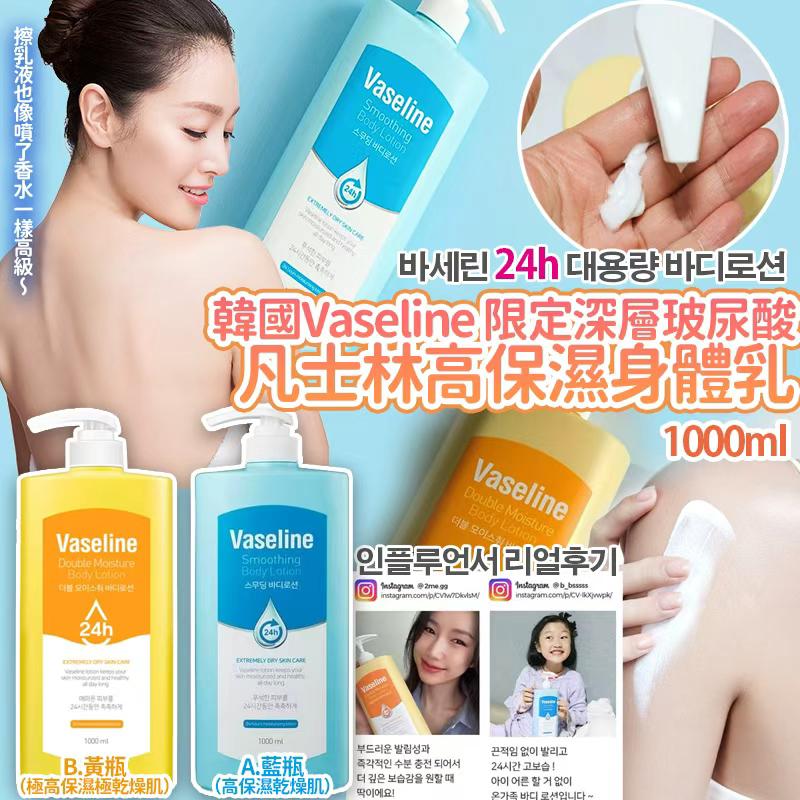 【韓國深層玻尿酸 Vaseline 凡士林高保濕身體乳 1000ml】