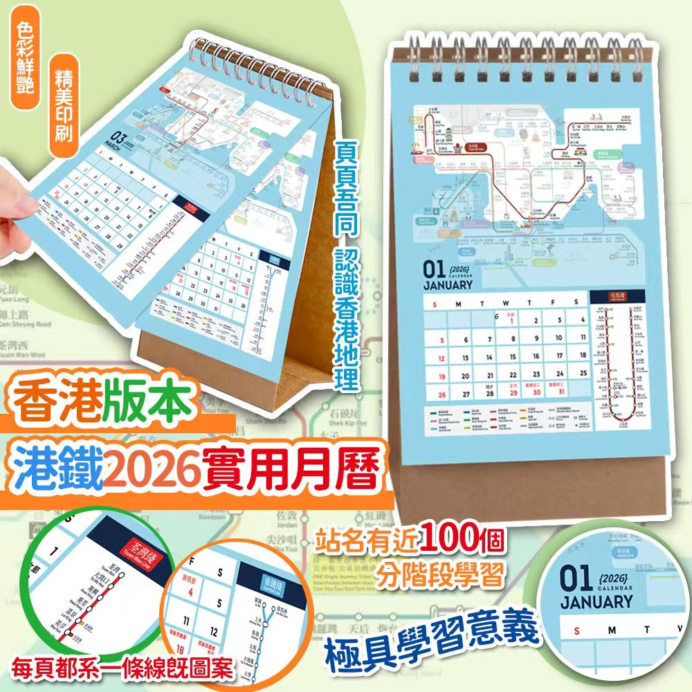 香港版本鐵路2026實用月曆