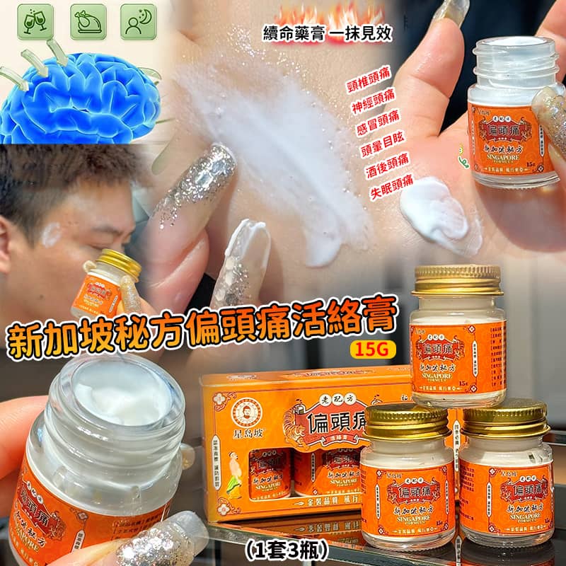 【新加坡秘方偏頭痛活絡膏 (1盒3樽)】