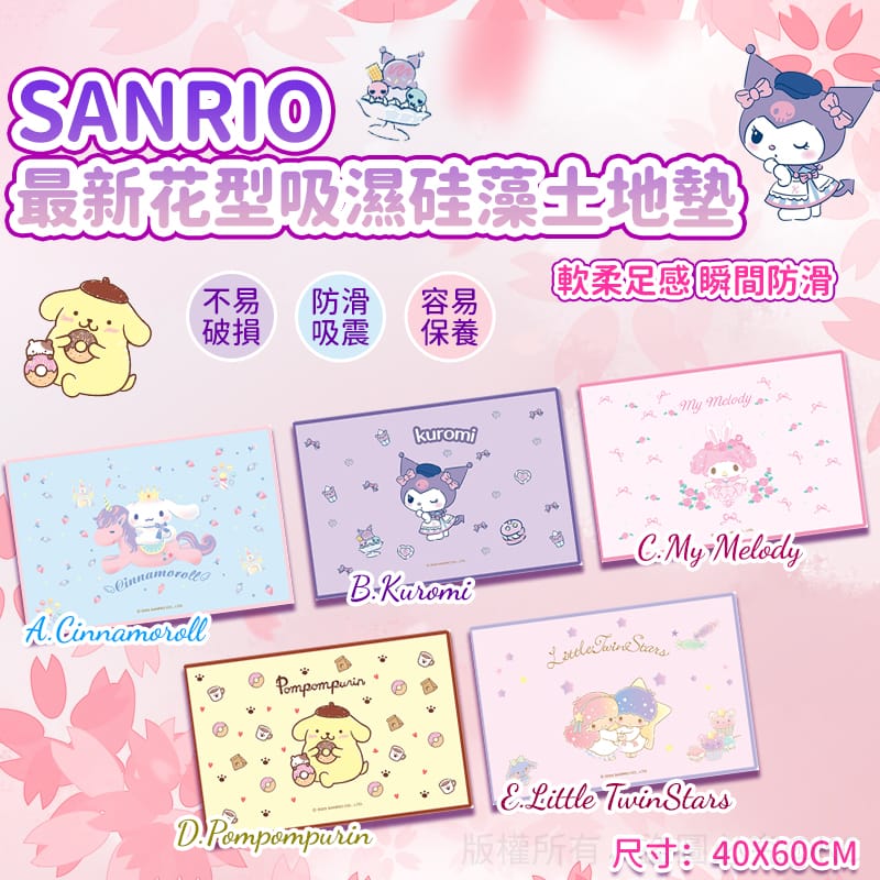 Sanrio 最新花型吸濕硅藻土地墊